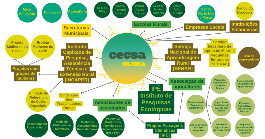 Iniciamos nossas atividades nos municípios de Águia Branca, Alto Rio Novo e Pancas, no Espírito Santo. O CECSA-Clima possui uma sede em Águia Branca, uma sala na Casa de Cultura Polonesa, cedida pela prefeitura do município. Atualmente essa articulação está se expandido para outros municípios da Bacia Hidrográfica do Rio Doce.