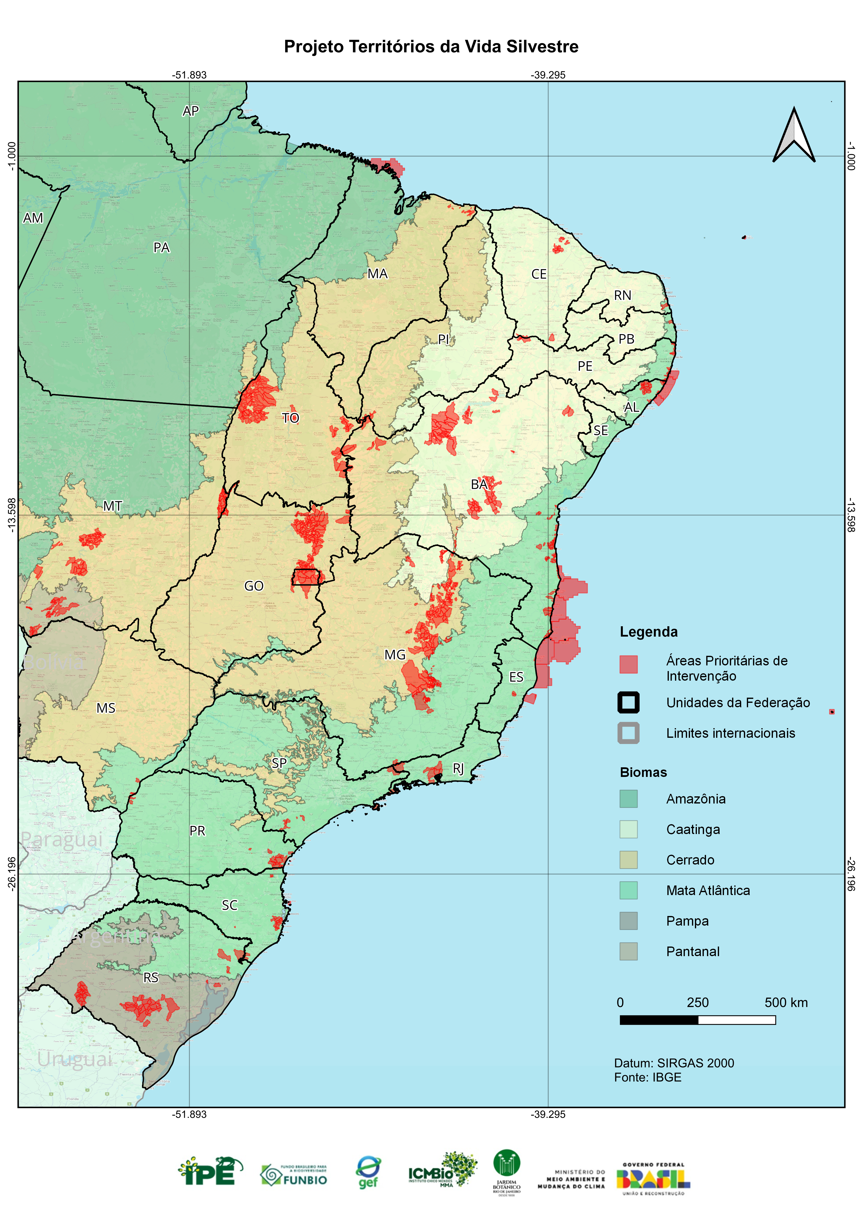 As ações e áreas prioritárias de intervenção foram definidas a partir de análises multicritério que identificaram aproximadamente 21 milhões de hectares de áreas críticas para ações de conservação considerando indicadores associados aos objetivos de conservação do Projeto. Nesses territórios críticos, as unidades de conservação e seus entornos funcionam como áreas núcleo para impulsionar e integrar diversas iniciativas de conservação da biodiversidade.